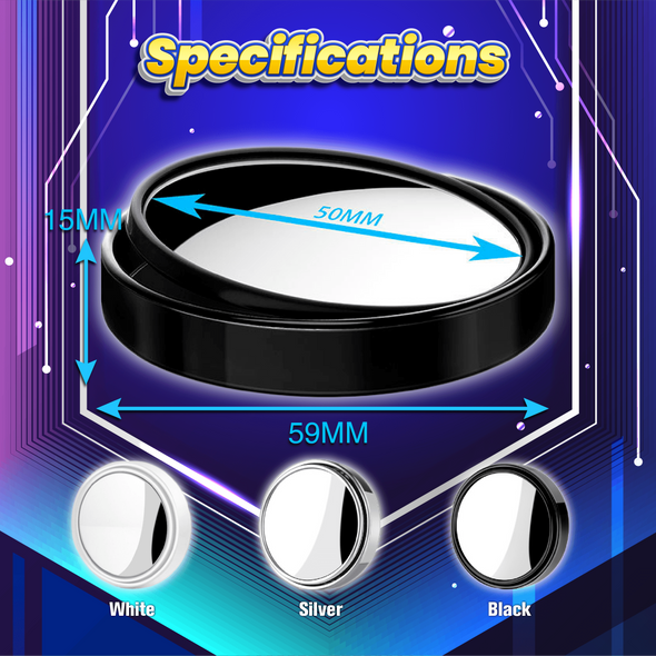 The adjustable wide angled mirror has a powerful back adhesion to keep it fixed and steady even on bumpy roads and extreme weather! It has a slim and compact design that doesn’t block too much space from your car’s side mirror. What’s more? This blind spot mirror has great durability and it doesn't distort or haze over that may obscure your view! Suitable for all types of cars such as trucks, sedans, SUVs, vans, RVs and more possibilities!